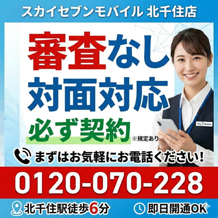 どなたでも契約できるスマホ会社が北千住にあります。 公開済み: 2026-04-15更新: 2026-04-15カテゴリー: News えっ、誰でも?と思われた方、当店は身分証明書(運転免許証、マイナンバーカード)、銀行のキャッシュカードをお持ちの方は必ず、ご契約できます。 他社で滞納してブラックになってる方でも、問題なく、ご契約できます。 必要書類をご用意していただいた方で、スマホが持てなかった方は現時点で、誰もいません。 「あなたの味方が北千住にある」、なんでも、気軽にお問い合わせください。